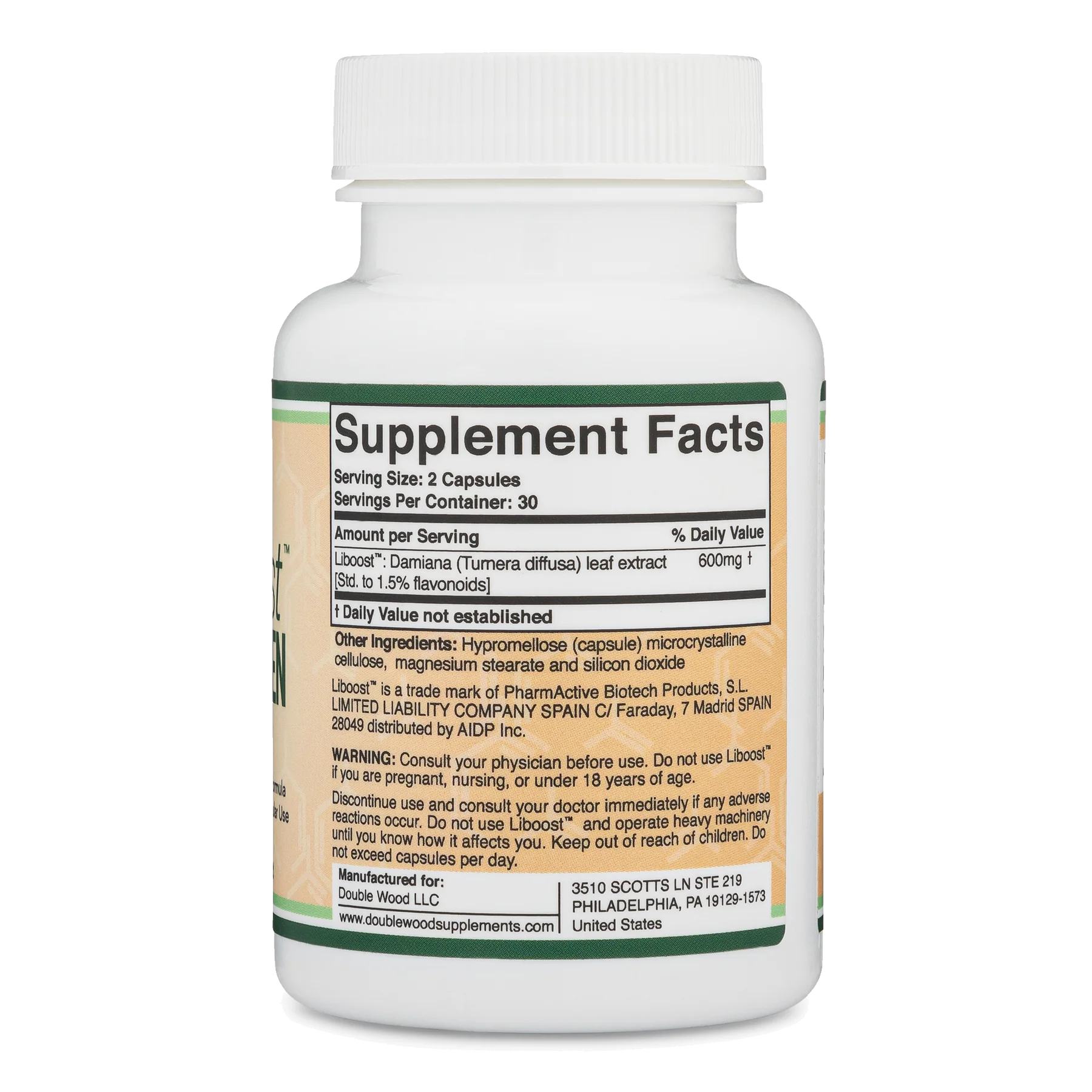 Liboost er algjörlega náttúrulegt og einkaleyfisbundið Damiana (Turnera diffusa) þykkni staðlað í >= 1,5% lífflavonóíð. Blöðin af damiana plöntunni hafa langa sögu um notkun í Suður-Ameríku læknisfræði sem ástardrykkur til að auka kynhvöt.