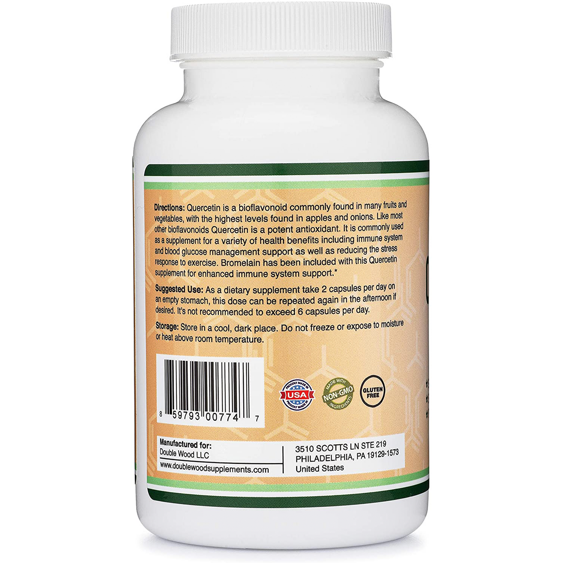 Inniheldur 100mg af BROMELAIN - Bromelain hjálpar til við að bæta upptöku Quercetin og bætir virkni þess. Quercetin okkar er framleitt í Bandaríkjunum og er prófað með tilliti til hreinleika og virkni.